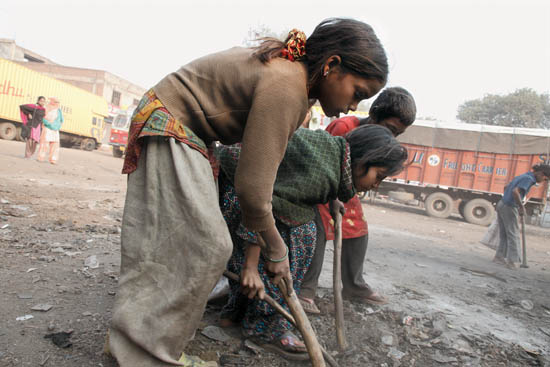 Mädchen auf der Suche nach Metallsplittern, Gwalior, Madya Pradesh,